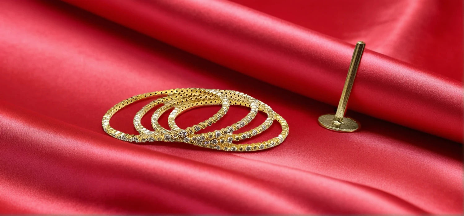 A stunning set of gold-toned bangles, encrusted with sparkling stones—perfect for traditional flair with a modern sparkle.